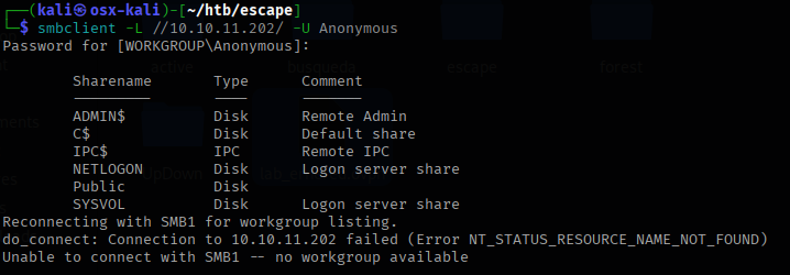 Escape- Hackthebox lab