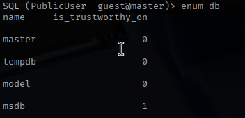 I connect to the SQL server with the discovered account. It looks like the databases are all default with nothing interesting.