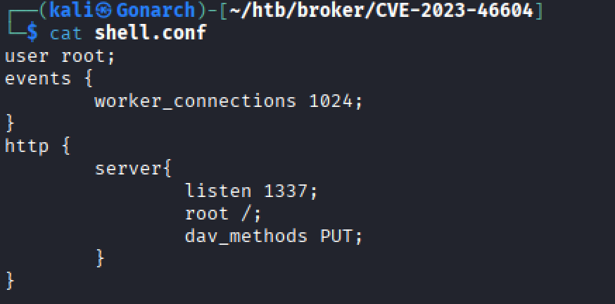 By default Nginx starts as root (so it can bind to low ports) then immediately drops to the user named in the user directive (often www-data or nginx). Setting it explicitly to root stops that privilege drop, so every worker process keeps root’s file-system permissions. I snagged this conf file from https://0xdf.gitlab.io/2023/11/09/htb-broker.html.