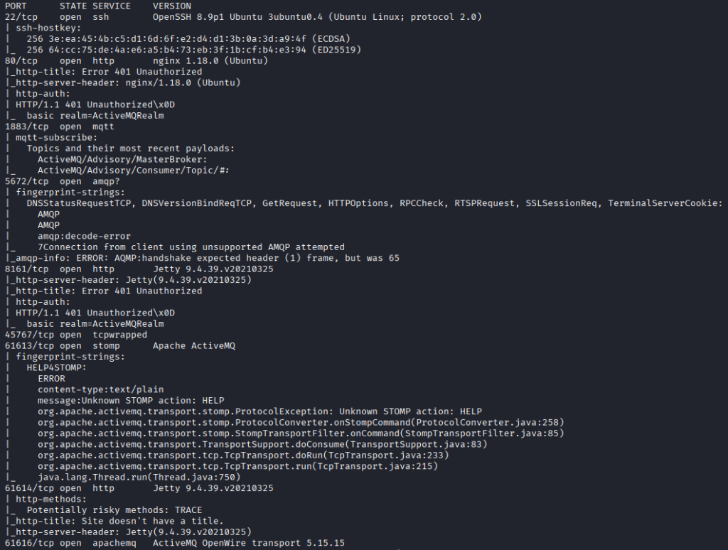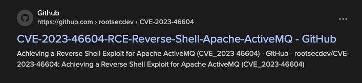 I started looking into the ActiveMQ service and did a search for version 5.15.15. This led to the CVE-2023-46604 exploit with a public RCE on GitHub.