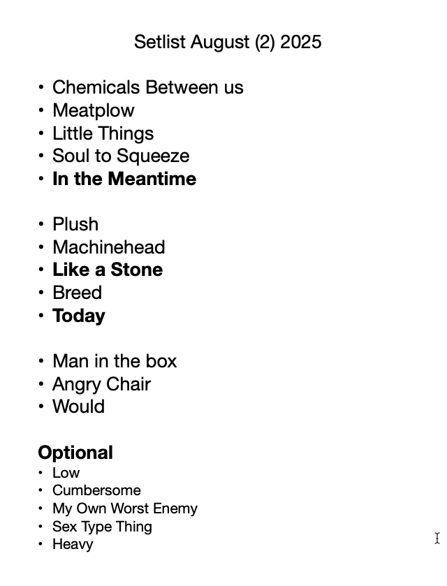 At this point I must have gotten distracted and started working on the setlist for my band, here is a screenshot of that.