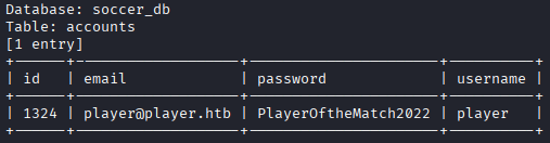 soccer_db - SSH access as player