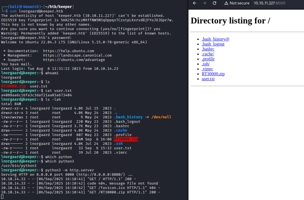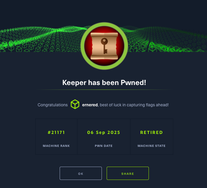 Completing the Keeper lab demonstrated how an attacker can chain multiple findings into a full system compromise. Default credentials, sensitive data in user directories, and vulnerable applications all played a role.