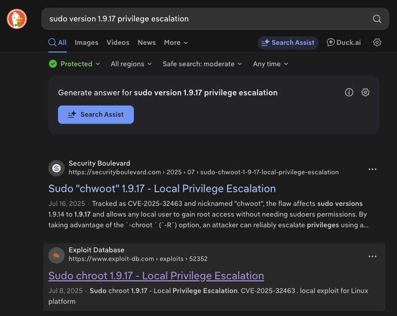 Exploit Title: Sudo chroot 1.9.17 – Local Privilege Escalation