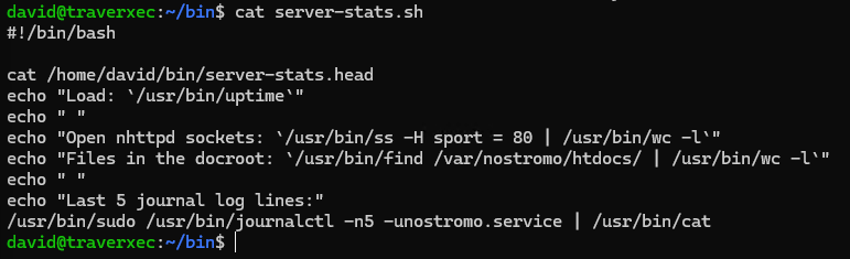 After gaining SSH access as david, I began enumerating the system for potential privilege escalation vectors. During this process, I discovered a script in David’s home directory that executed a sudo command running journalctl. Since journalctl can sometimes be abused to spawn a pager or shell under elevated privileges, this immediately looked promising. I began researching possible techniques to leverage this behavior for privilege escalation.