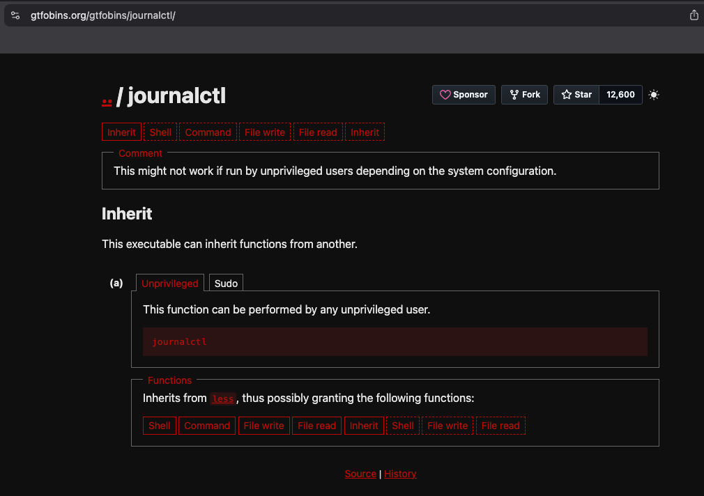 While researching journalctl on GTFOBins, I discovered that journalctl uses less as its default pager. Because less allows shell escapes when running with elevated privileges, this behavior can potentially be abused to execute arbitrary commands as root. This confirmed that the journalctl sudo permission could be leveraged as a viable privilege escalation vector.