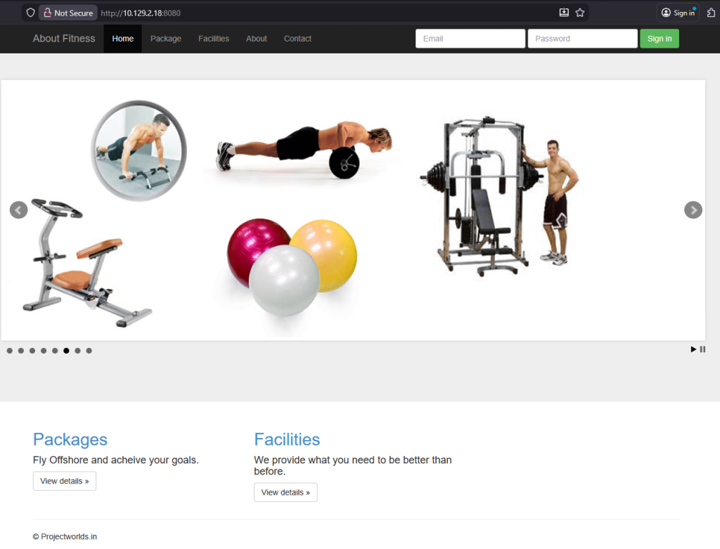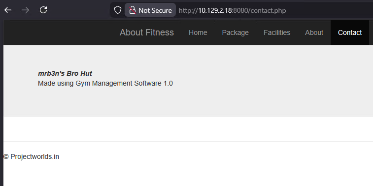 Next, I began enumerating the web application to identify potential vulnerabilities. The site appeared to be a gym services platform, and during enumeration I discovered that it was running Gym Management Software version 1.0.