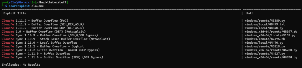 I proceeded to search for known vulnerabilities related to CloudMe using Searchsploit. The search returned several promising results, indicating the presence of publicly available exploits that could potentially be leveraged for privilege escalation.